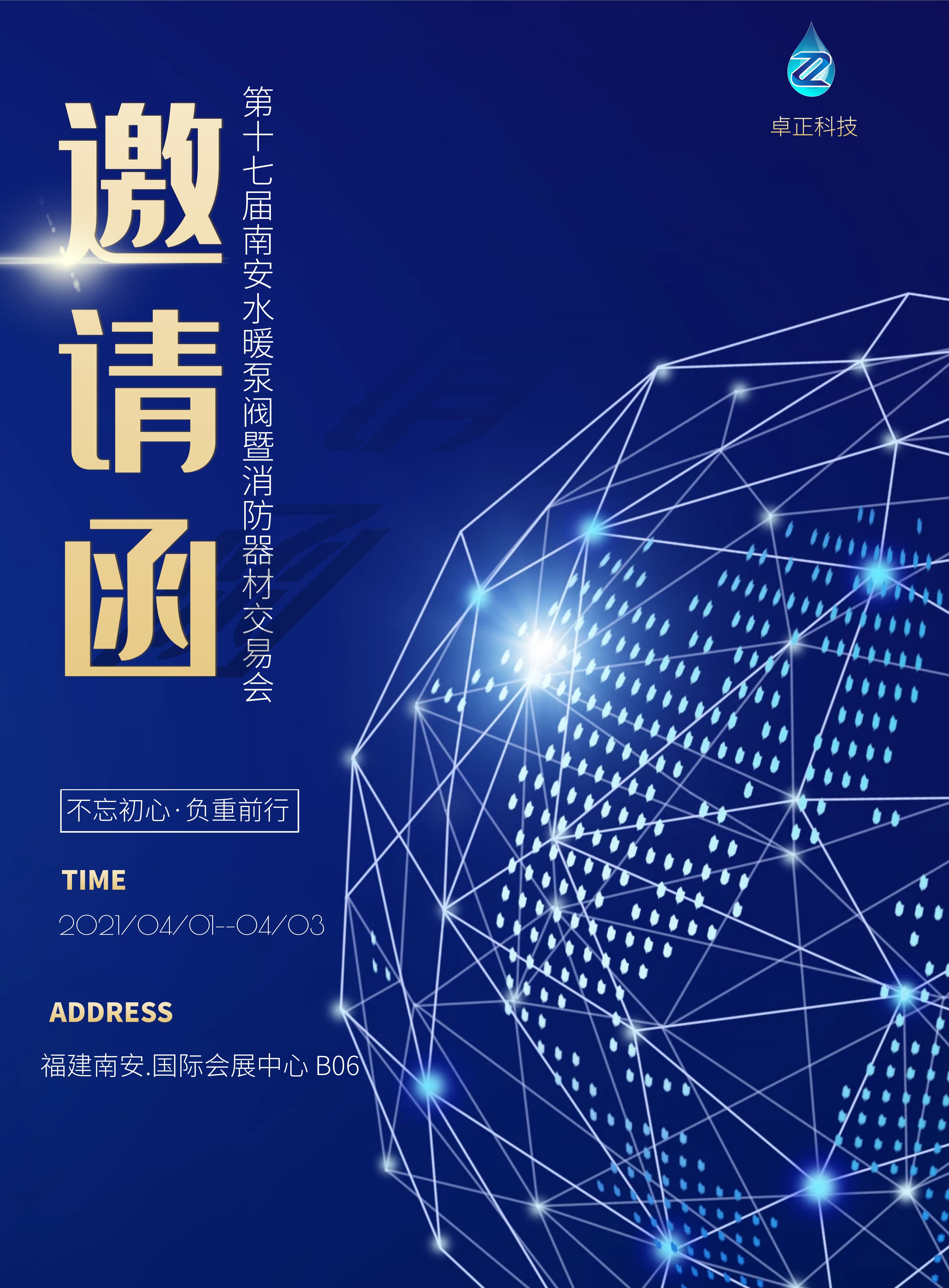 您好!我們誠摯邀請您觀展在2021 年 4 月 1 日至 3 日福建南安國際會展中心舉辦的第十七屆南安水暖泵閥暨消防器材交易會,卓正科技應(yīng)展會邀約將如期趕赴參展。