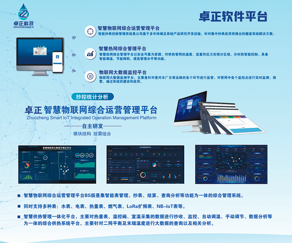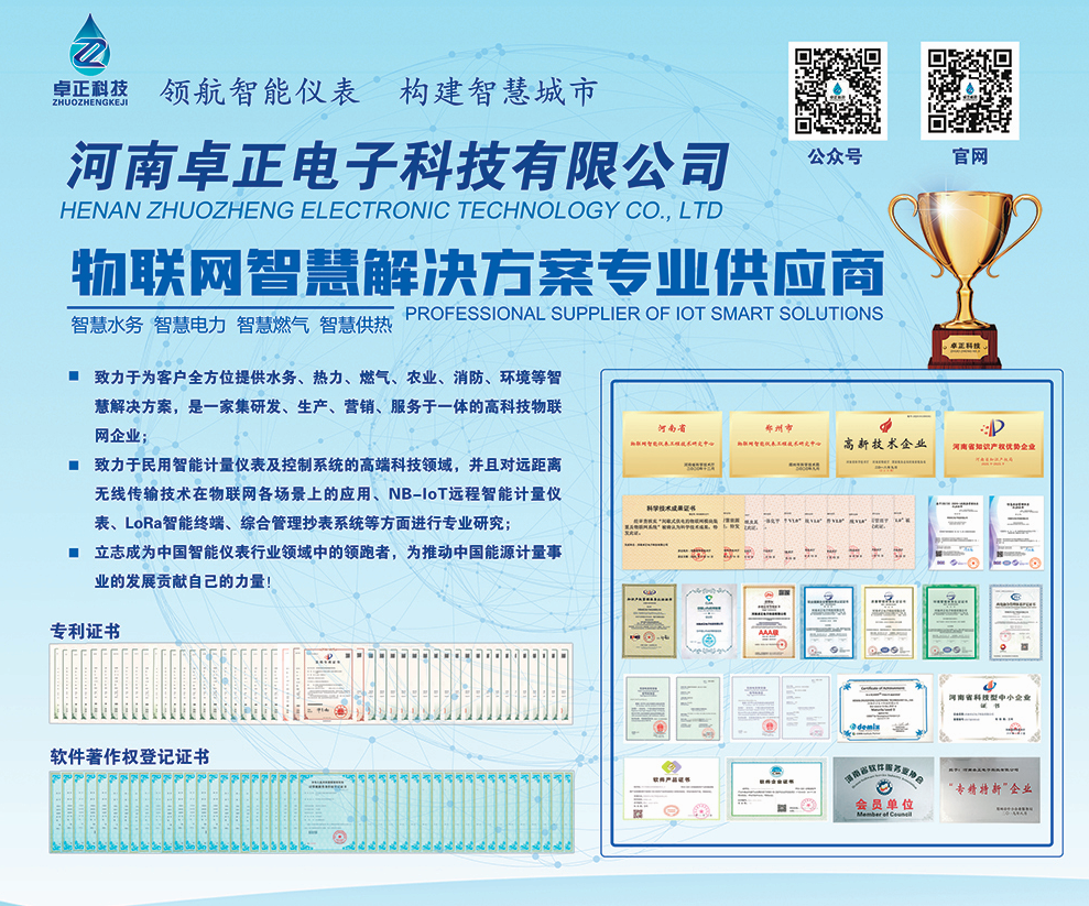 河南卓正電子科技有限公司,專業(yè)的物聯(lián)網(wǎng)表應(yīng)用方案提供商,擁有一支多名博士、碩士組成的核心研發(fā)團隊,率先將NB-IoT、LoRa遠傳技術(shù)、智能閥控技術(shù)應(yīng)用于水務(wù)、熱力、燃氣、農(nóng)業(yè)、消防、環(huán)境領(lǐng)域,以“領(lǐng)航智能儀表 構(gòu)建智慧城市”為企業(yè)使命,立志成為中國智能儀表行業(yè)領(lǐng)域中的領(lǐng)跑者,為推動中國能源計量事業(yè)的發(fā)展貢獻自己的力量!
