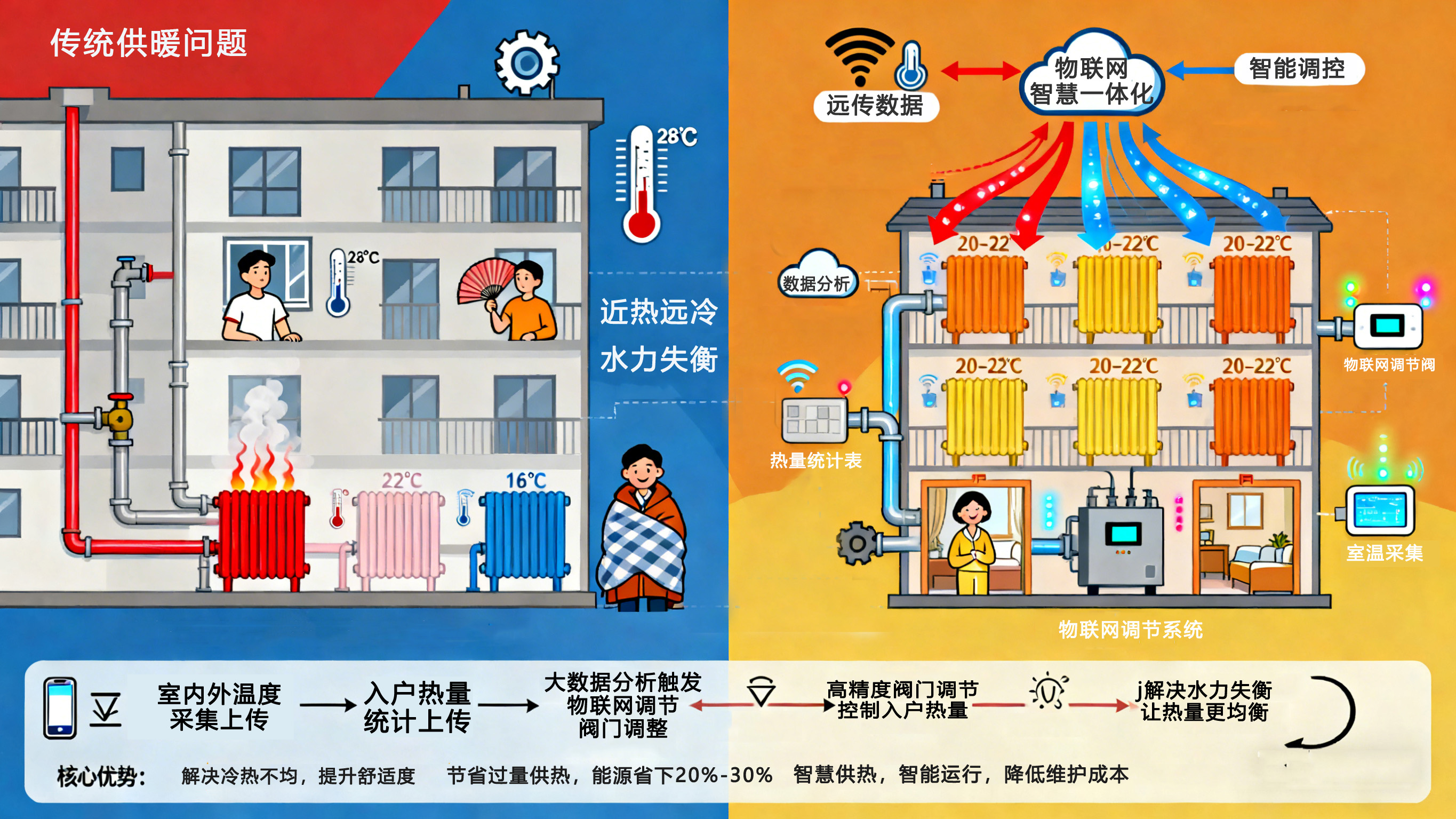 按需供熱:根據(jù)實(shí)際需求分配熱量,避免"過熱開窗"的浪費(fèi)現(xiàn)象