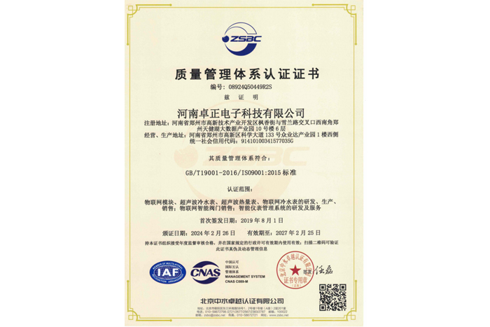 質(zhì)量管理體系認(rèn)證證書(shū)
